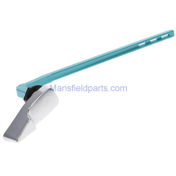 Mansfield 42 Chrome Trip Lever. It is the only model with the blue arm. It angles toward the front of the tank. Lever comes with the reverse thread nut to secure it to the tank.
