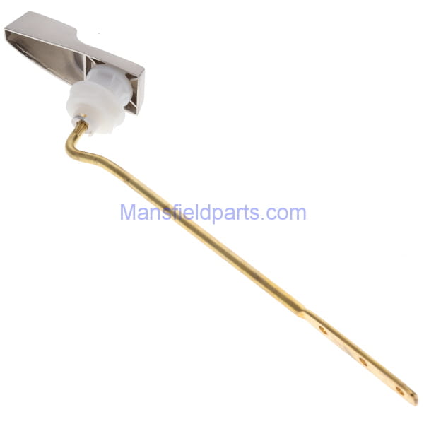 Mansfield 55 Satin Nickel Metal Trip Lever. This lever is used as an alternate trip lever for several models including the model 10, 11, 20, 21, and 25 as well as many others. This part can also be found under the product number 006306037, and 6306037. The arm and handle are metal. The lever's round arm design makes it easy to bend and adjust to fit the model you are working on.