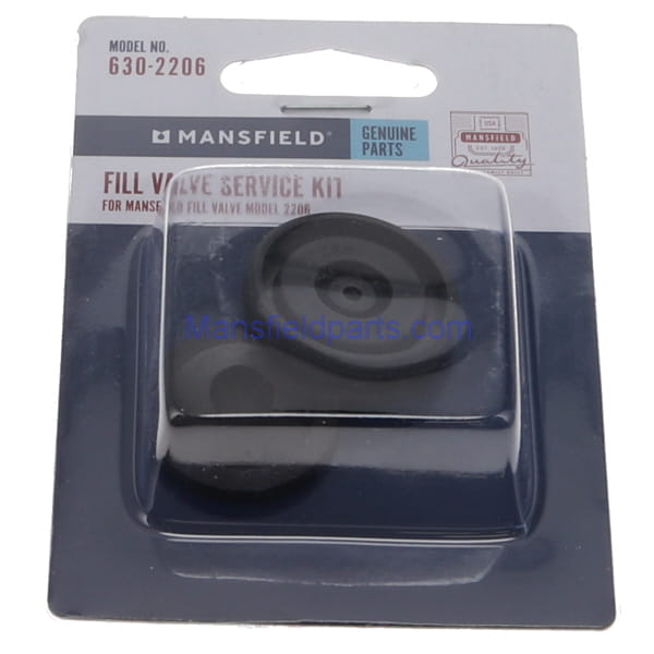 Mansfield 630-2206 Seal Kit For The 2206 Fill Valve. Mansfield product number 106302206. The seal kit installs in the top of the fill valve to stop it from continuing to run once the tank is filled but not over flowing. When the seals get dirty, or begin to deteriorate it can also make a loud groaning, or whining sound. The larger of the two seals will install in the center cap of the fill valve. The smaller seal will be installed under the smaller air vent assembly.