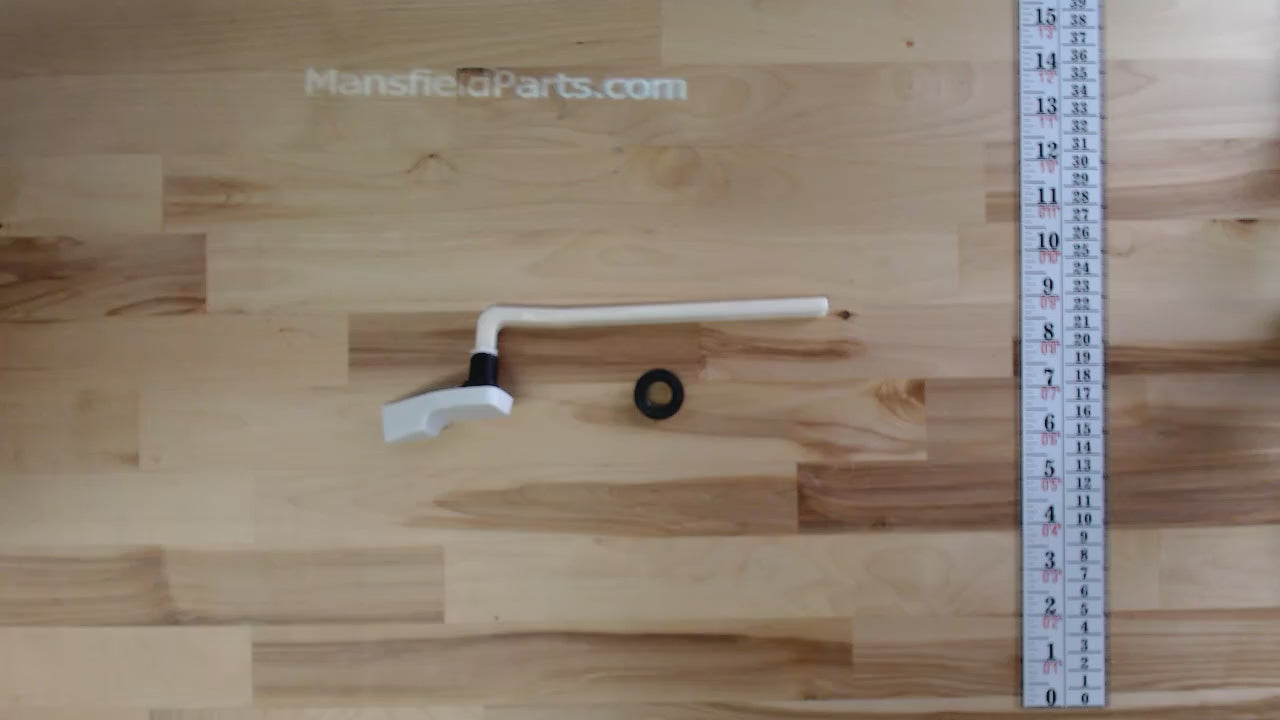 White Trip Lever For Several Mansfield Tanks Including 11, 21, 26, 160, 161, 165, 170, 171, 175, 180, and 190. This lever is shorter than most with a 7 inch arm. The holes in the lever have been added over time. Some of the original levers did not have holes in them but this is the replacement for them. If your lever is breaking, or if it is hard to flush you probably need to replace the flush valve seal. A new seal usually makes the toilet flush with one finger.